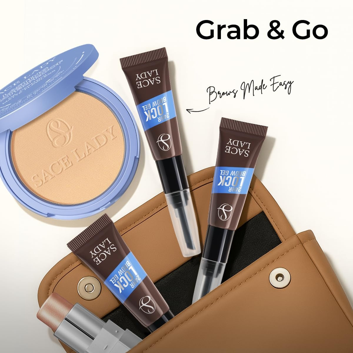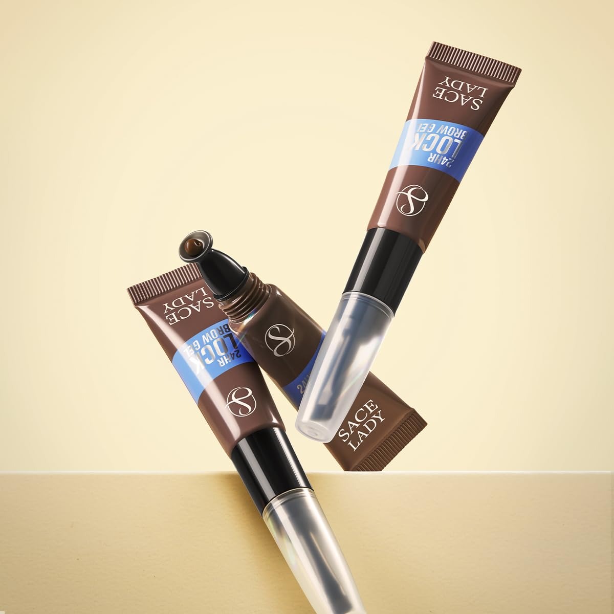 SACE LADY 24H Lock Eyebrow Gel keeps brows defined, waterproof, and natural-looking with a built-in brush for fast, mess-free application.